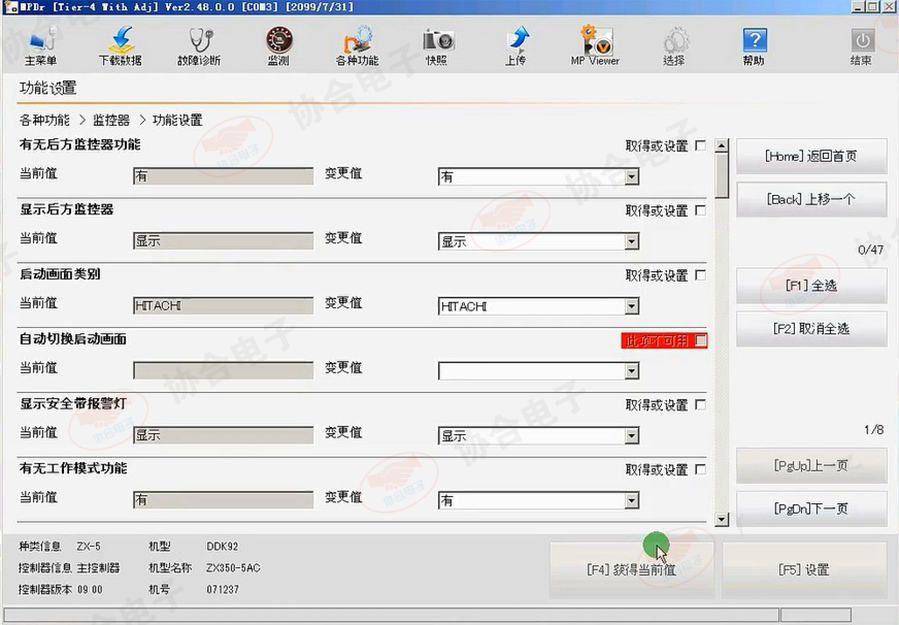 日立挖掘机诊断监控器功能设置界面